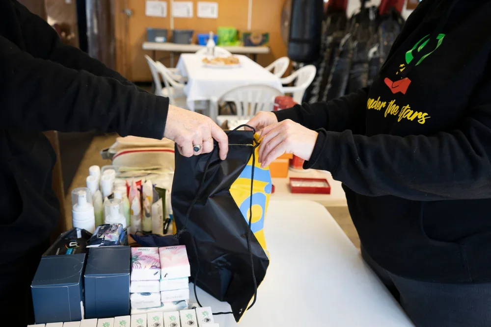 Toiletries - toothbrushes, toothpaste, roll-on deodorant, sanitary items, shampoo, conditioner, soap and razors.
